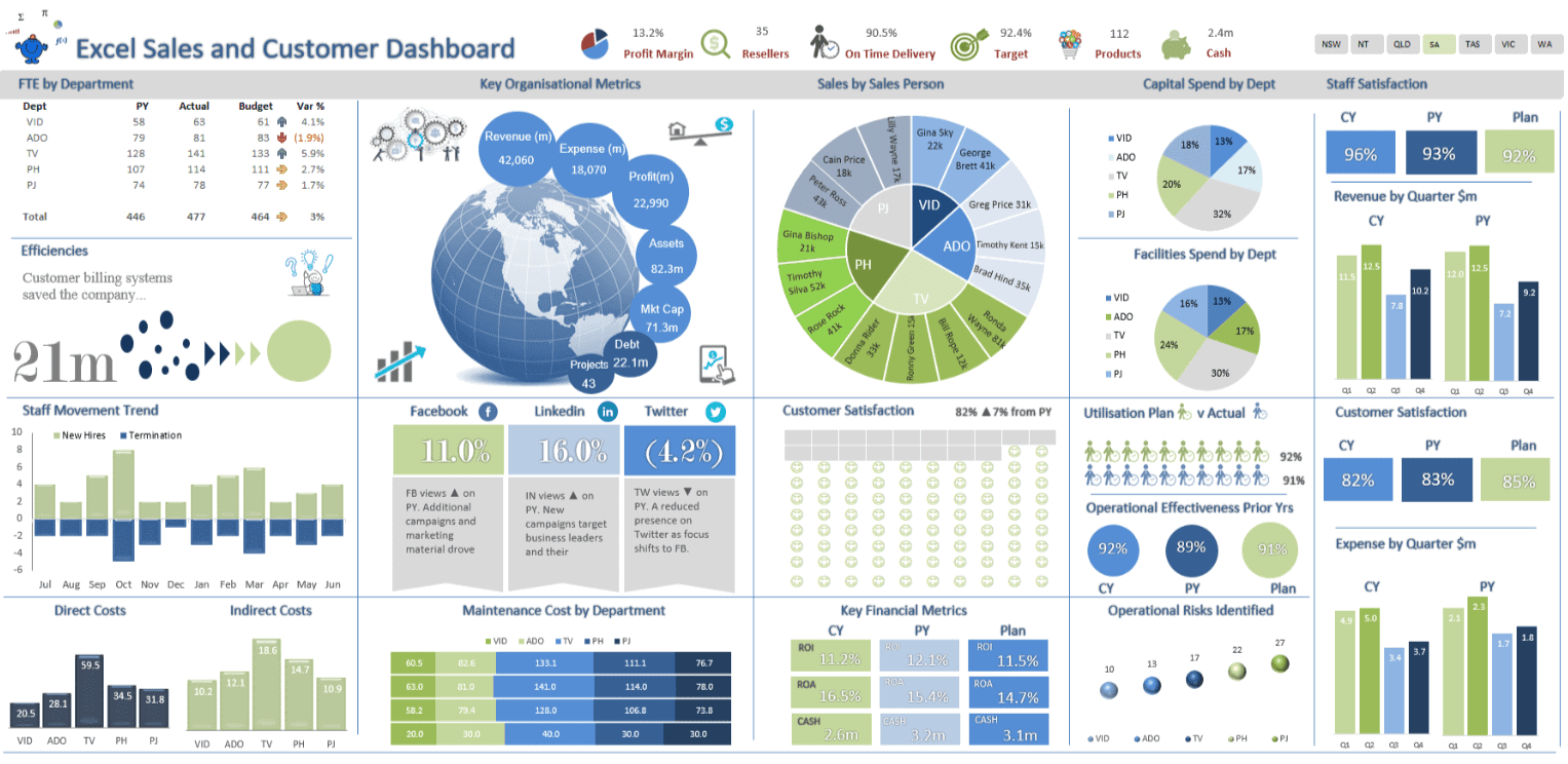 • Build professional-looking dashboards and reports, and present your data in a visually appealing way